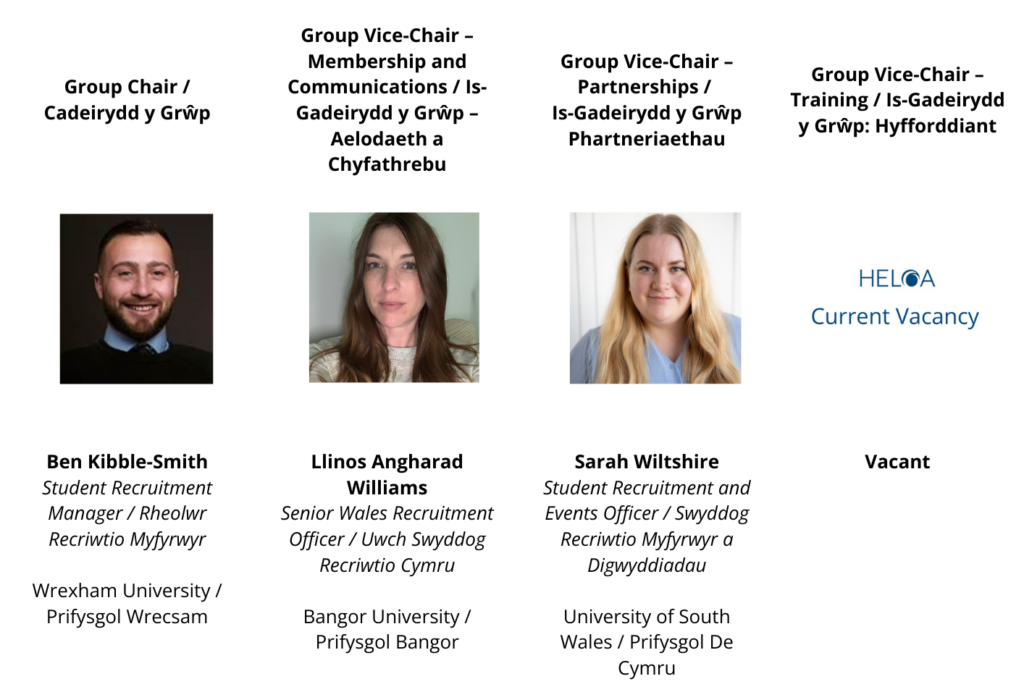 The Wales Group consists of staff from all 9 Welsh higher education institutions and our members work across a wide range of roles within the sector. We are an active group who work in close collaboration through training and networking to offer timely and balanced information, advice and guidance to prospective higher education students, their families, and schools and colleges.